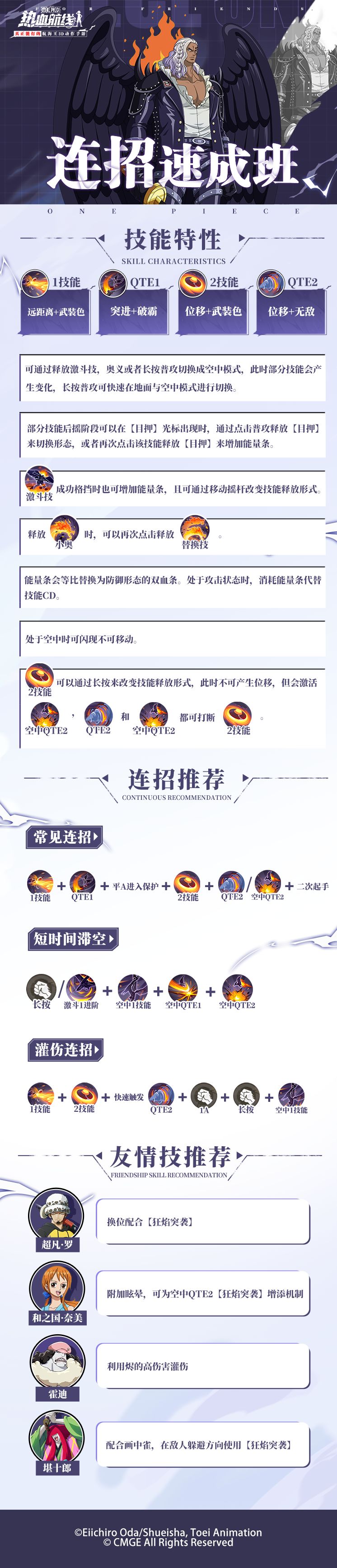 ⭐烬连招一图流⭐ 空中形态,地面形态,防御形态,攻击形态。四种形态大大提高了烬的灵活度与上限。不仅有空中优势还有双血条和免技能CD的机制,让烬有着亮眼表现! 乔小巴带着连招速成班来啦!技巧机制连招这儿统统都有!拿下这份秘籍,让你的烬点燃整个战场! 热血航线福利官可雅酱堂堂登场! 每月固定福利礼包、不定期抽奖活动和神秘福利链接即将来袭!高招券、金果、贝里、还有实体周边等丰厚福利……可雅酱这里统统都有
