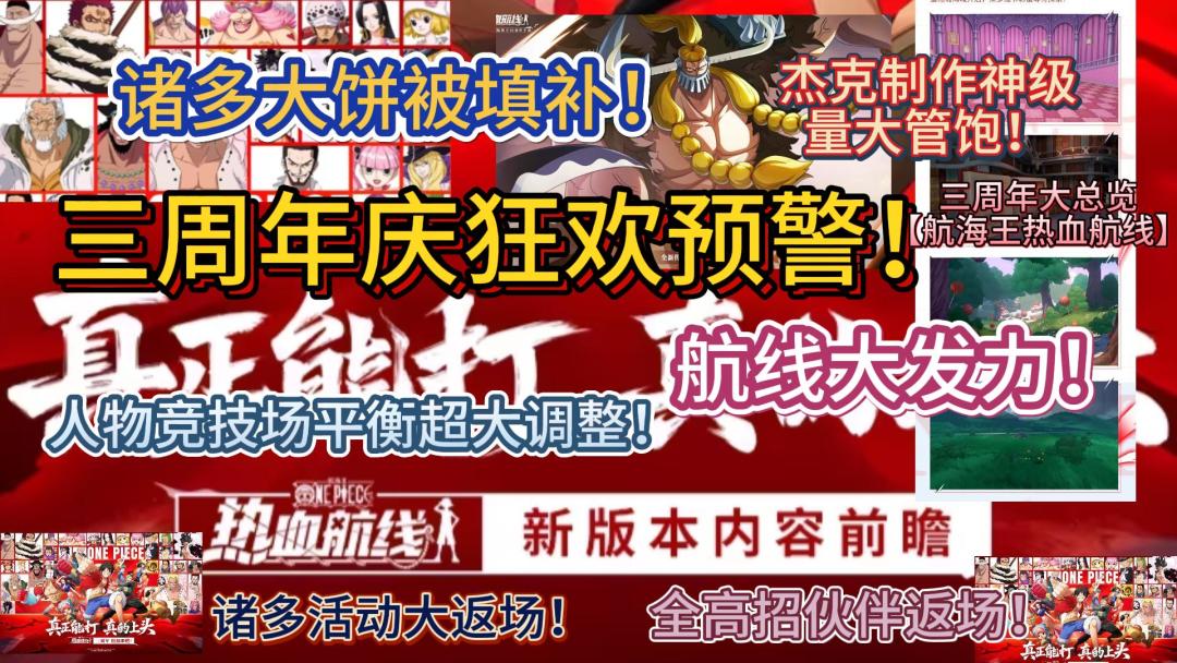 三周年庆狂欢预警!航线大发力!诸多大饼被填补!人物竞技场平衡超大调整!杰克制作神级量大管饱!诸多活动大返场!全高招伙伴返场!三周年大总览【航海王热血航线】#游戏种草计划#游戏推荐#航海王热血航线#三周年#竞技场#伙伴返场
