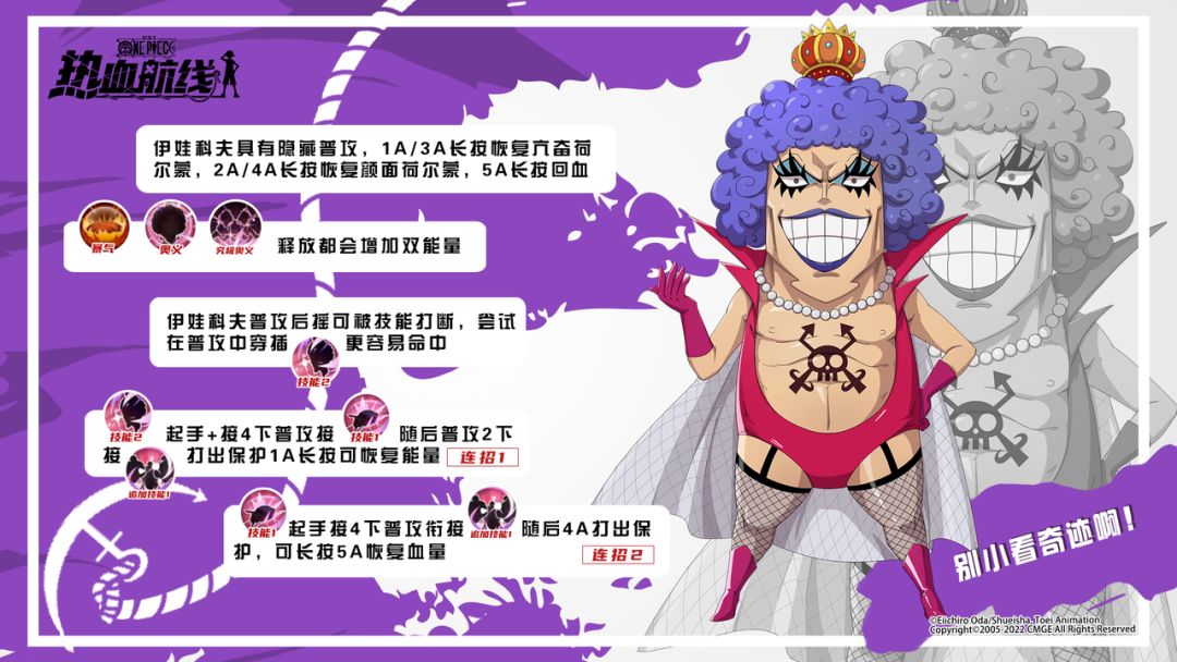“让你见识一下正宗新人类拳法的极致吧!” 全新传奇伙伴「伊娃科夫」现已登场!丰富的技能形态,特殊的普攻机制,搭配不同的荷尔蒙能打出不同的技能效果,让对手捉摸不透,并且能够为自己恢复血量,提升在场上的续命能力。 如何玩好伊娃科夫呢?不用担心,乔小巴为各位船长准备好了实用的技巧和连招心得,帮助各位船长快速上手!