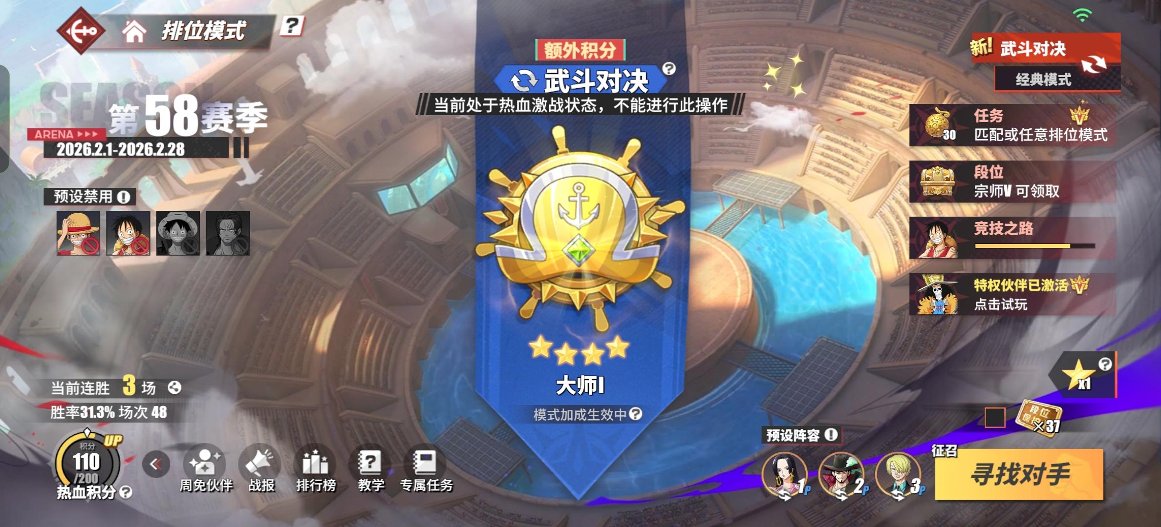 #航海王热血航线 解决问题啊,现在PVP的武斗模式 结算不了页面了,修复bug呀