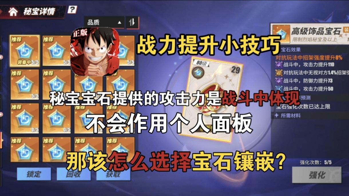 秘宝宝石提供的攻击力是战斗中提升!不会作用于人物面版!