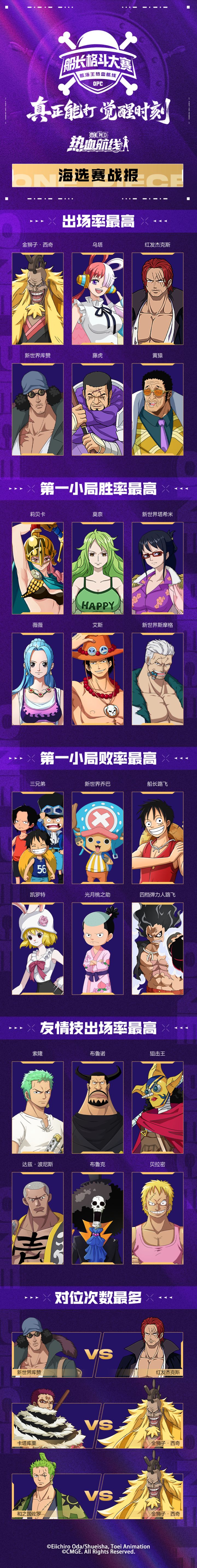 ⭐「S13船长格斗大赛」海选赛战报⭐「S13船长格斗大赛」海选赛圆满落幕,选手们的奋力拼搏为我们带来了无数精彩瞬间!现在,让我们一同回顾海选赛中的 热门竞技数据 ,看看哪些伙伴强势登顶,哪些组合备受青睐!更多信息欢迎关注官方动态,一起期待选手们下一次对决吧!热血航线福利官可雅酱堂堂登场!每月固定福利礼包、不定期抽奖活动和神秘福利链接即将来袭!高招券、金果、贝里、还有实体周边等丰厚福利……可