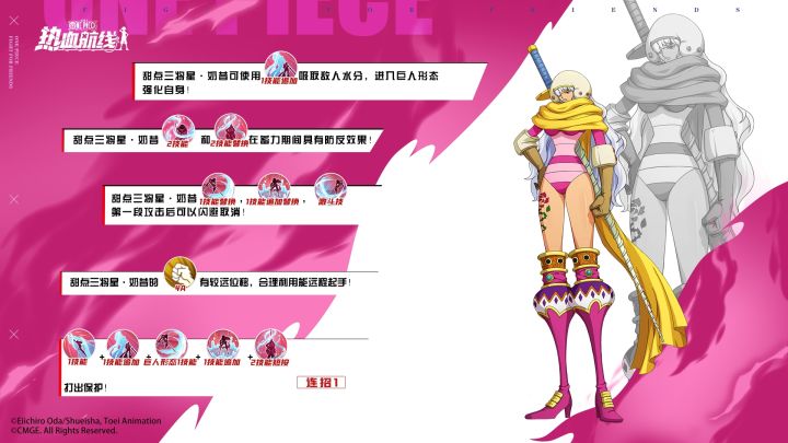 身为拧拧之果的拥有者,这位大长腿美女将星可谓是在战场上风姿夺人,其强劲的起手实力以及转化为巨人形态后的机制强化都让这位新伙伴成为了全新的竞技场“上分利器”!本期航海秘籍,乔小巴还是邀请到了“热死阿狸了”船长为大家带来了一些甜点三将星·奶昔的战斗技巧和对抗方法,希望能助力船长们拿下更多胜利!伙伴使用技巧:1. 【精巧刺击】的释放速度快,并且距离较远,适合用于先手起手或者用于抓后摇使用,那么当甜