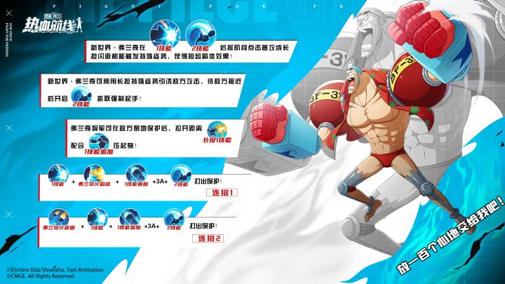 全新传奇伙伴「新世界·弗兰奇」现已登场!连招攻略带你快速上手新伙伴!弗兰奇将军的钢铁炮弹会在实战中展现怎样的威力呢?本期连招速成班,乔小巴为各位船长带来了新伙伴的实战技巧与连招心得,希望各位船长能在新伙伴的帮助下冲破阻碍,尽情奔向新的冒险旅途!