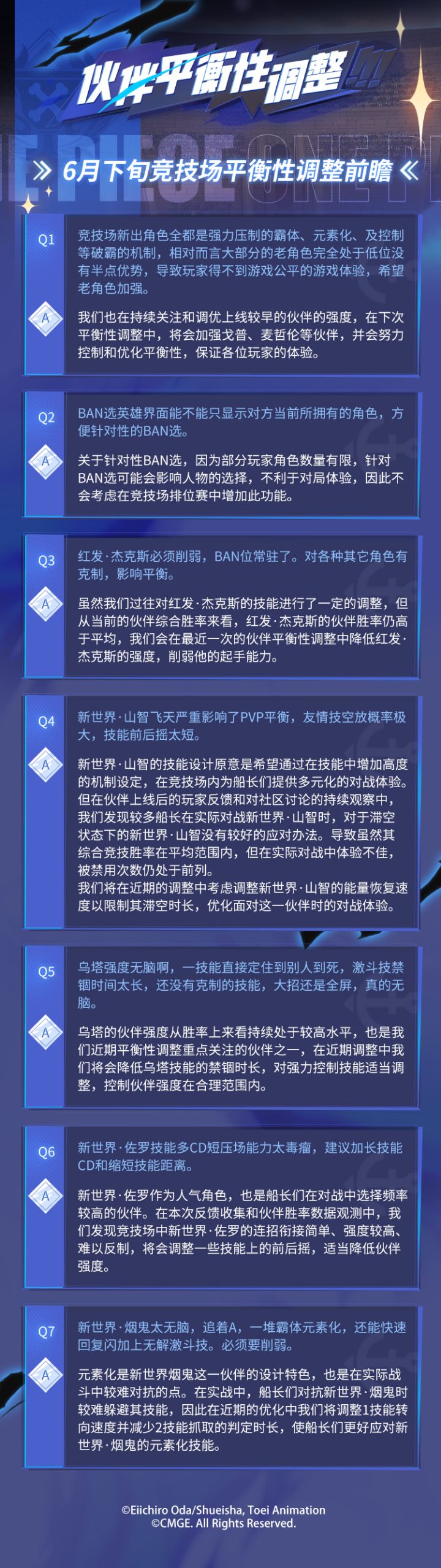 ⭐6月下旬竞技场平衡性调整前瞻⭐继上次发布了热血竞技场平衡性调整问卷后,我们收到了许多船长热情的建议,并对此进行了整理,预计6月21日将进行平衡性调整,船长们可以点击下方长图预先了解平衡性调整的部分内容。我们将持续关注热血竞技场的平衡性问题,船长们如果在日后的战斗中有其他相关的调整建议,也可以继续在评论区留言,感谢各位船长的支持。