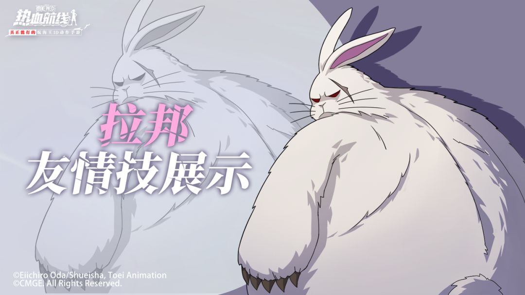 ⭐全新海域人物形象「拉邦」展示⭐全新友情技 & 海域人物形象「拉邦」惊喜登场!这群性情刚烈的雪原猛兔,将在竞技场上释放友情技为各位船长强势助阵!⭐友情技「拉邦邦邦」介绍三只拉邦结伴登场,若小拉邦未受攻击,大拉邦便会发动凌厉上挑;若小拉邦遭遇攻击,大拉邦将立刻暴怒,对敌人展开迅猛追击。更多相关细节,详见下方视频~