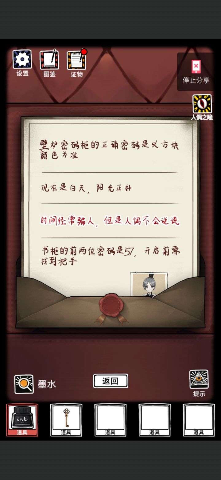 来个人告诉孩子吧,哪里错了,配件全有了,但就是一直显示不全,我对比给的线索图,反复比对,就花瓶图案不一样,但是看大佬们的攻略,也没有要改变花瓶图案啥的,头秃,然后顺便和和我有一样问题的,下一章进不去的,可以把网络关掉重新连接就有用了,不过它是一次性的,下次你要看广告或者下一章是还是要重复关网重连
