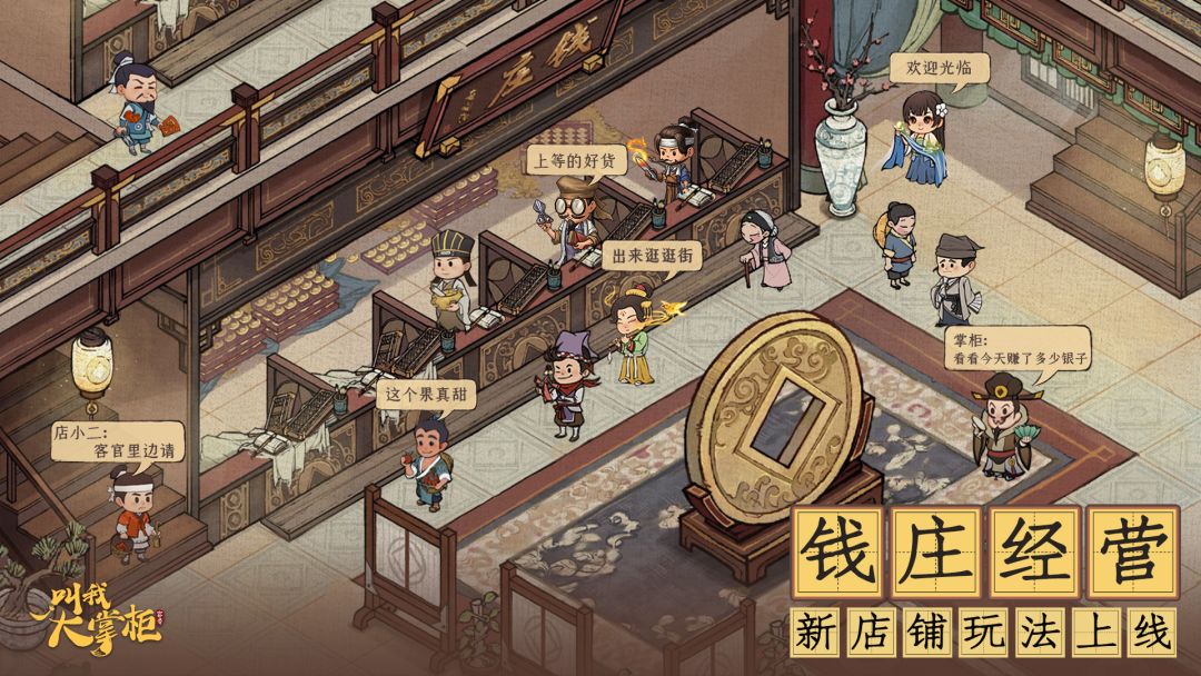 各位掌柜等候已久。 《叫我大掌柜》将于5月7日10:00开服! 《叫我大掌柜》将带各位玩家重回宋朝 摇身一变成为一名掌柜 【经营店铺,体验掌柜乐趣】 汴梁城中掌店铺 水墨卷里行商梦 在宋朝汴梁开一家店 慢慢扩展规模 收购店铺 小小的一片城镇逐渐繁盛起来 【招募门客,寻求经营上的好帮手】 士农工商侠 各路好汉 齐聚汴梁 出谋划策 尽收麾下 他们各个身怀绝技 在不同的行业中发挥长处。 想你的店铺经营更