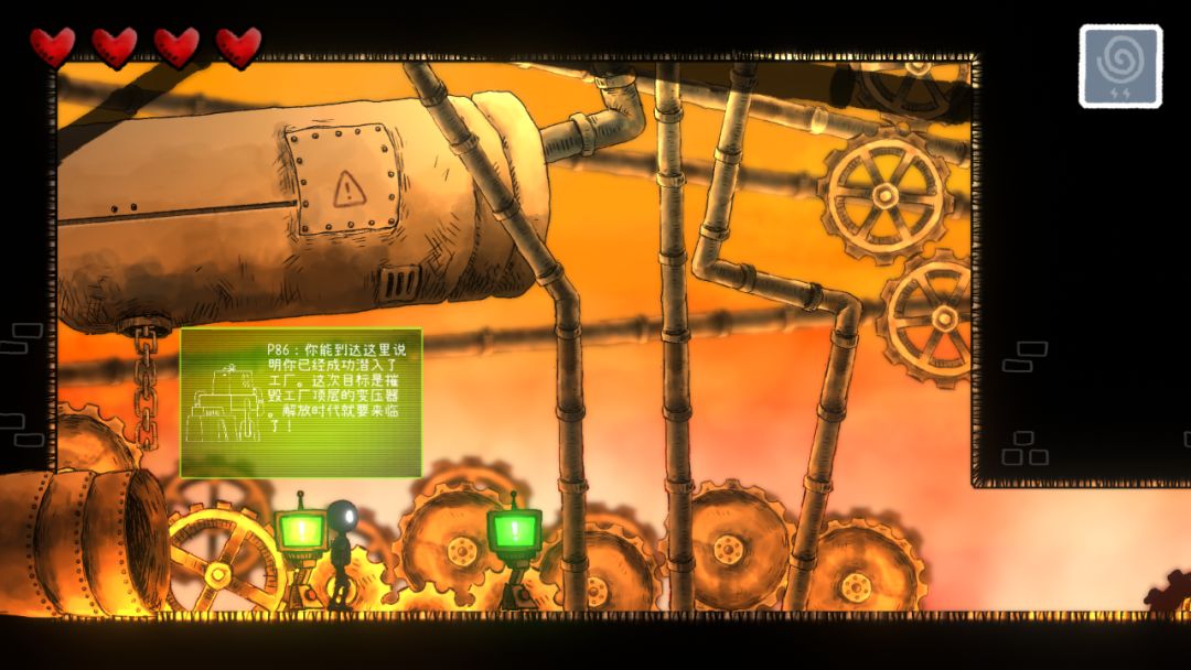 这是一部横板动作潜入游戏,关卡为类银河战士恶魔城式的地图,玩家可以自主选择攻关方式和成长路线,快来解放整个工厂吧!