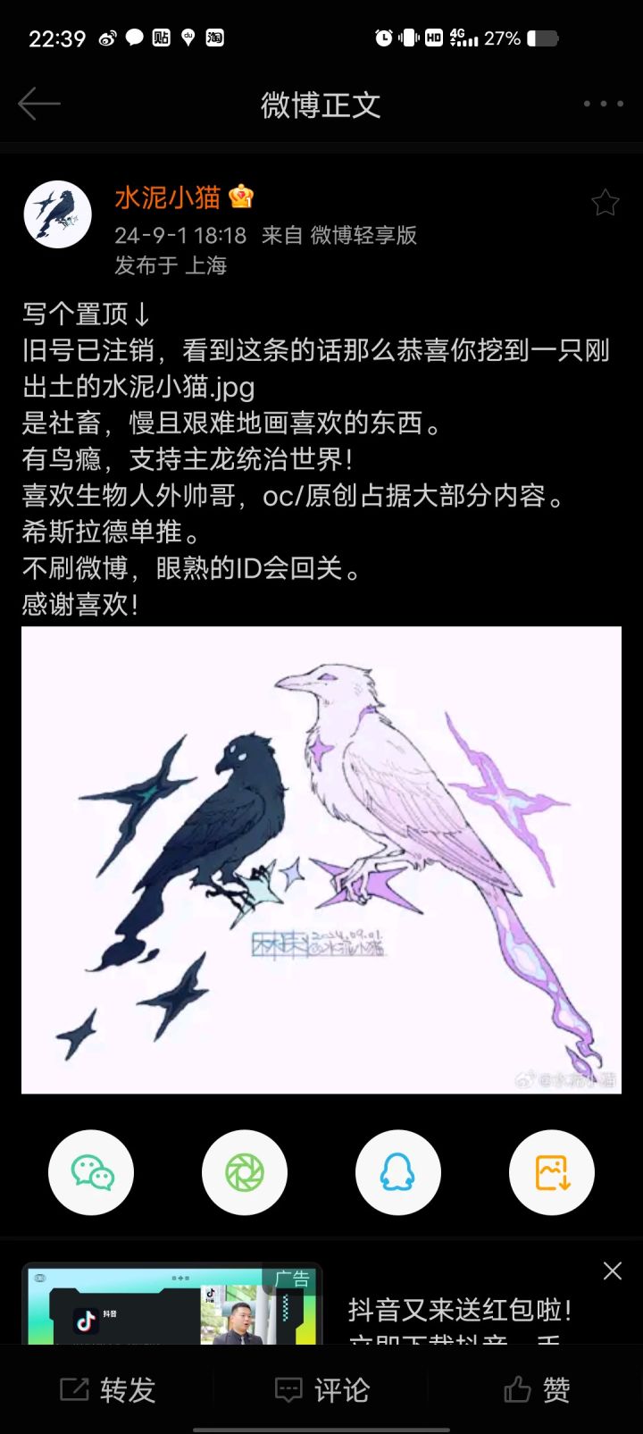 今天路过老家这边的配饰店,想着可以的话再搞些finder方面的配饰吧,在想林深之前的微博名字的时候,想不出来了,我就想着搜搜看,结果发现搜不出来,后面一看,嗯。旧已故去。……。那份执念还没消失。它一直活着。好像直到出生或者流产才会选择结束🔚。一切好像就是这样。我就像一个孕妇。而finder是一个蝌蚪。就这样,我怀孕了。但一直一直没有产下……。为了产出……,我得花费一堆心思。逃