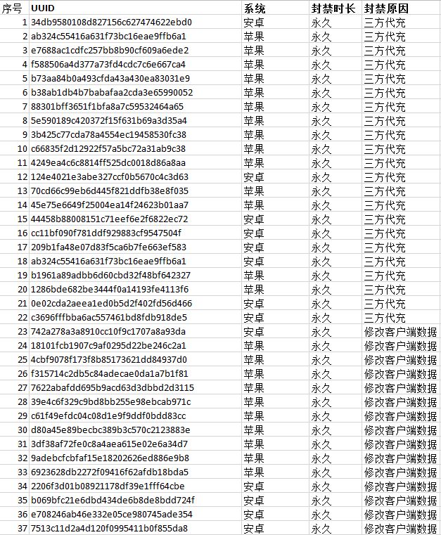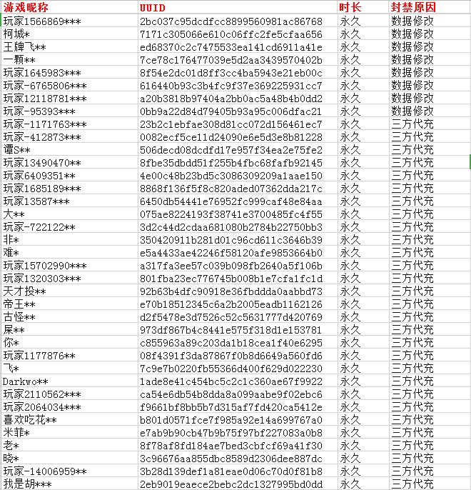 各位机长们:《银翼战机》致力于打造绿色公平的游戏环境,严禁在游戏过程中使用外挂类工具,破解、修改游戏内道具以及在非官方渠道进行违规代充。我们对于这类玩家将会永久封号处理,打击非法游戏行为官方零容忍! 以下是近期部分封号名单(已对玩家进行了隐私 处理): 【常见问题解答】 问:我没有任何违规情况,账户却被封禁了,可以申请么? 答:可以!如果您在未违反上述规定的情况下发现账户被封禁了,请添加Q群(18