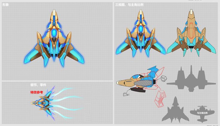 首先大白要和各位机长道个歉,新内容拖更了这么久属实有点怠慢各位机长,但是千呼万唤始出来,新战机总归是来了!大白这又从策划小翼那偷来了一份图纸,那么话不多说!各位机长跟随大白一起来了解一下吧~ 大贤者战机设计图 战机背景:宇宙皇家联盟军队所打造使用的专属战机!在宇宙战场上将敌人的子弹无效化并转化为资源收集利用。其全身由陨金构造而成,尽显皇家奢侈气质!镶嵌反重力原石机身散发幽燃蓝光,在战争中可以使用反