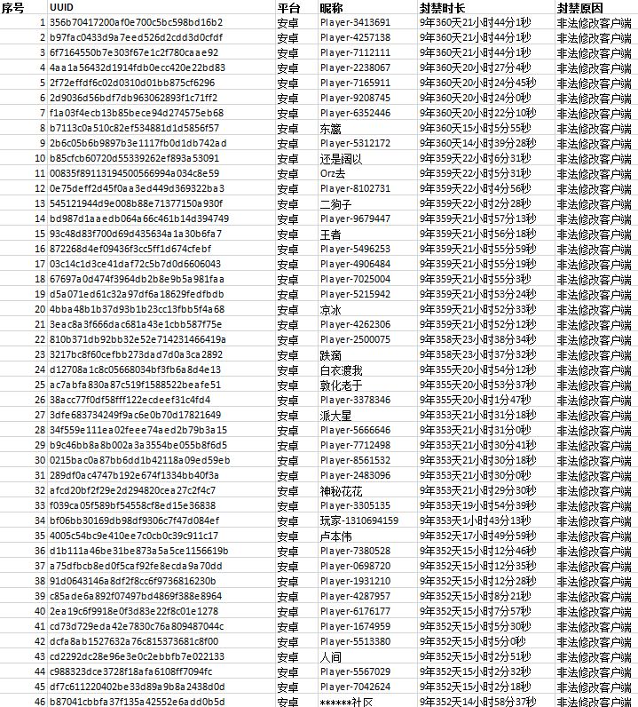 各位机长们:《银翼战机》致力于打造绿色公平的游戏环境,严禁在游戏过程中使用外挂类工具,破解、修改游戏内道具以及在非官方渠道进行违规代充。我们对于这类玩家将会十年封号处理,打击非法游戏行为官方零容忍!以下是近期部分封号名单【常见问题解答】问:我没有任何违规情况,账户却被封禁了,可以申请么?答:可以!如果您在未违反上述规定的情况下发现账户被封禁了,请添加Q群(185469189)并联系群内“银