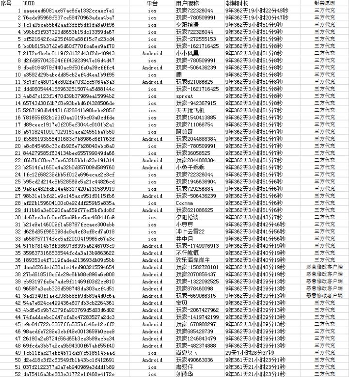 各位机长们:《银翼战机》致力于打造绿色公平的游戏环境,严禁在游戏过程中使用外挂类工具,破解、修改游戏内道具以及在非官方渠道进行违规代充。我们对于这类玩家将会十年封号处理,打击非法游戏行为官方零容忍!以下是近期部分封号名单【常见问题解答】问:我没有任何违规情况,账户却被封禁了,可以申请么?答:可以!如果您在未违反上述规定的情况下发现账户被封禁了,请添加Q群(185469189)并联系群内“银