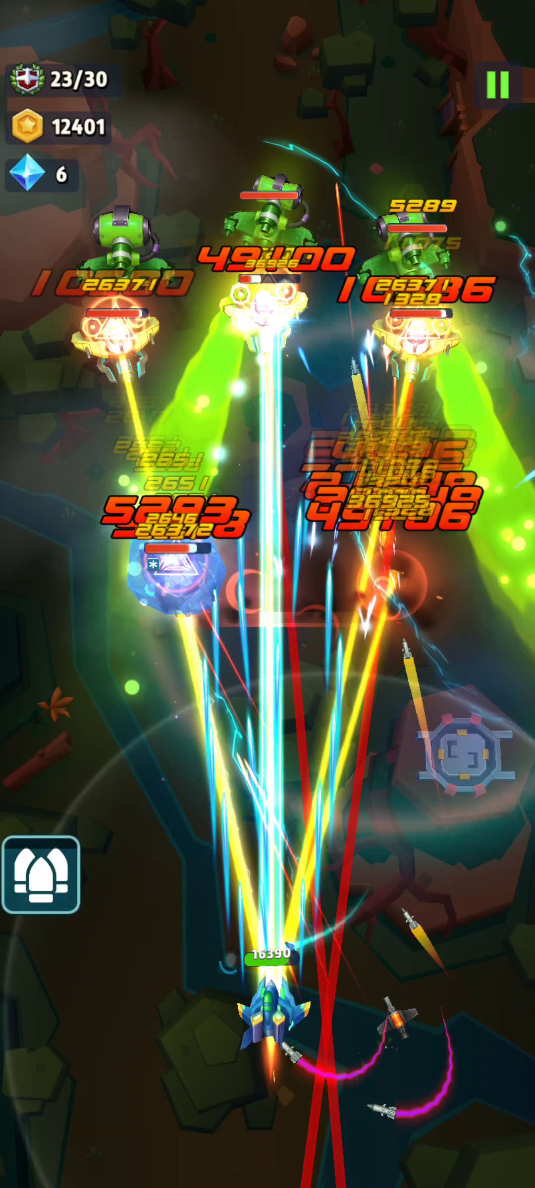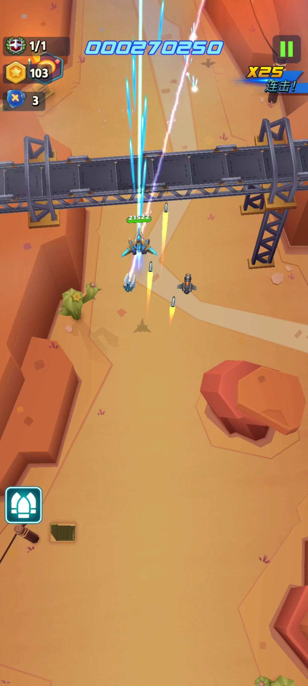 这个bug可以让你凭空撞子弹扣血 可能游戏每关都有个最低血量设置 只要飞机最大血量低于这个血量 就会触发这个bug