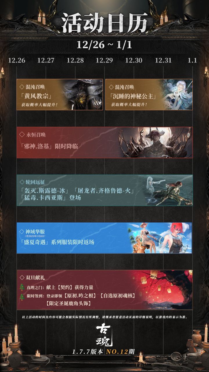 【魂域周刊】1.7.7版本 NO.12期丨周活动日历说明(12/26-1/1)