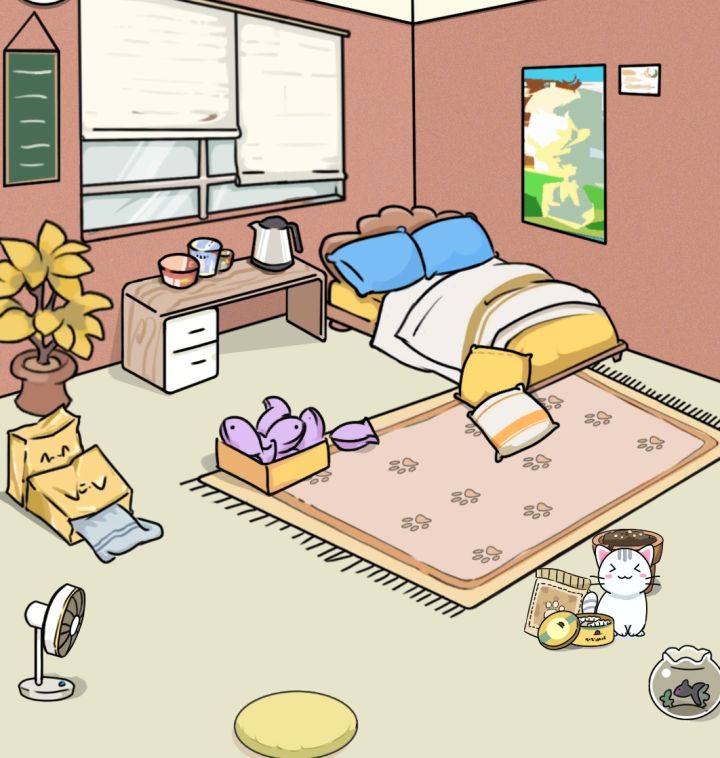 大大们下午好哦~今天这篇帖子的主要目的是......给大家看看我新搭的猫舍!!!现阶段各位大大就看我云吸猫吧,嘻嘻(●'◡'●)~小床边随意散着的抱枕、地毯上零落的玩具、小桌上的泡面、墙边的纸袋和散落的毛巾,处处都洋溢着慵懒的生活气息, 你的猫吃着它的小零食吹着你的小风扇......再配上这温暖的色调,啊~这真是我再喜爱不过的搭配了。同样色系的房间,你坐在地毯上,你的小猫惬意地趴在你腿上,