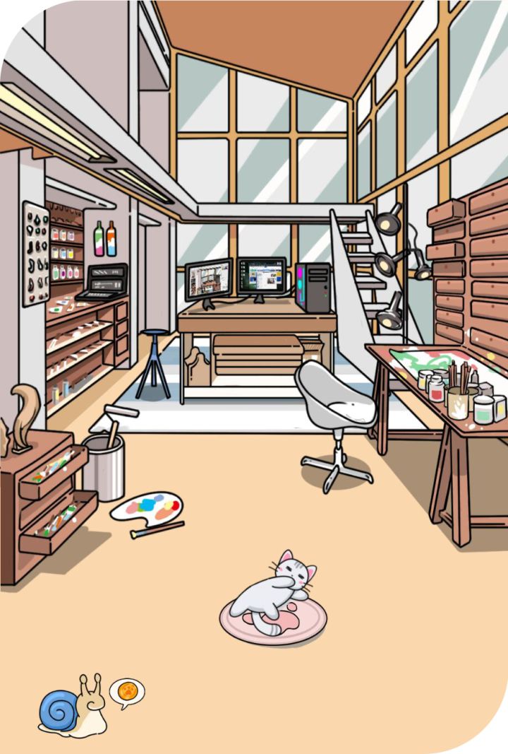 周五十点我们上线了《猫咪小舍》,大大们如今都过到多少关了呀~很好奇,猫咪小舍在各位大大手中被装扮成了什么样子呢~大大们可以将自己觉得最好的场景装饰贴在本帖下哦~如果能将如此装饰的原因写下来那就更更更nice啦!至于小编,嘿嘿~~先献个丑喽~~哈哈,大家是不是以为小编放出的是卧室的图片,没想到吧,为了这个工作室,小编可是奋战到了大半夜哦,怎么样现代风的工作室,配上木质风格的油画台,是不是还蛮