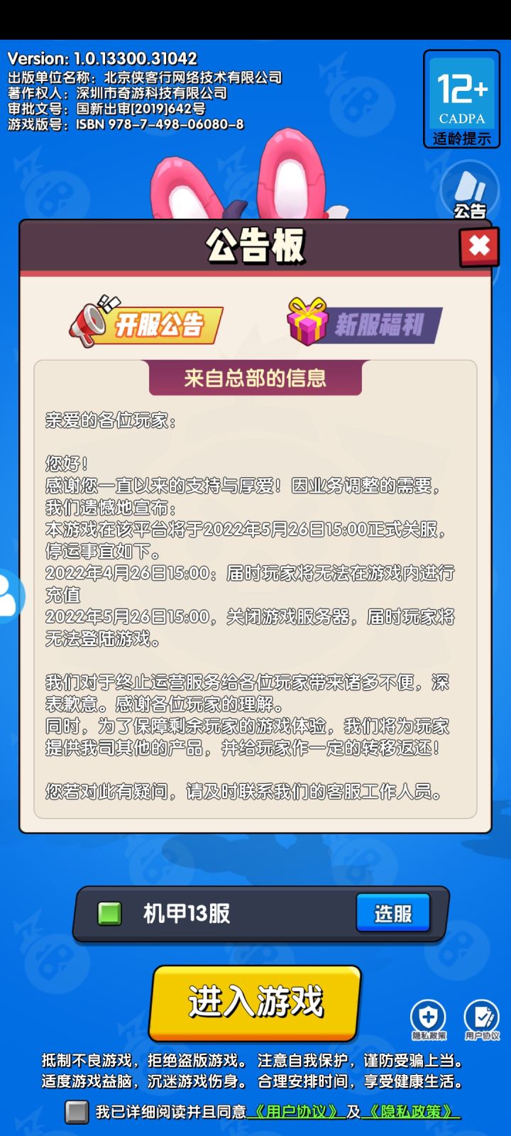 这5月26号停服。。。还能玩吗😂