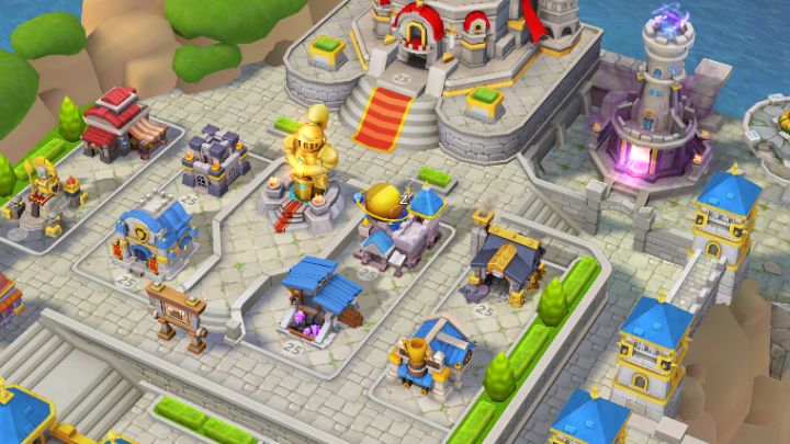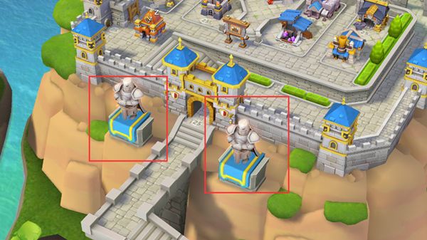 《生存战争》是一款以中世纪为背景的SLG游戏,而游戏的画风上,还是采用了较为可爱的卡通画风,这样的画风也容易会被大部分玩家所能接受。 主城的画风依旧是遵循着中世纪的建筑风格,石材的部分采用了类似石砌的方式进行排列,使整个画面看起来都更为自然,而建筑的颜色也都采用了大量的蓝色和黄金色,这种配色在中世纪也有过采用。 主城的门口也是设计的非常堂皇的,在左右各有骑士雕像作为点缀,看似没什么特点,但其实