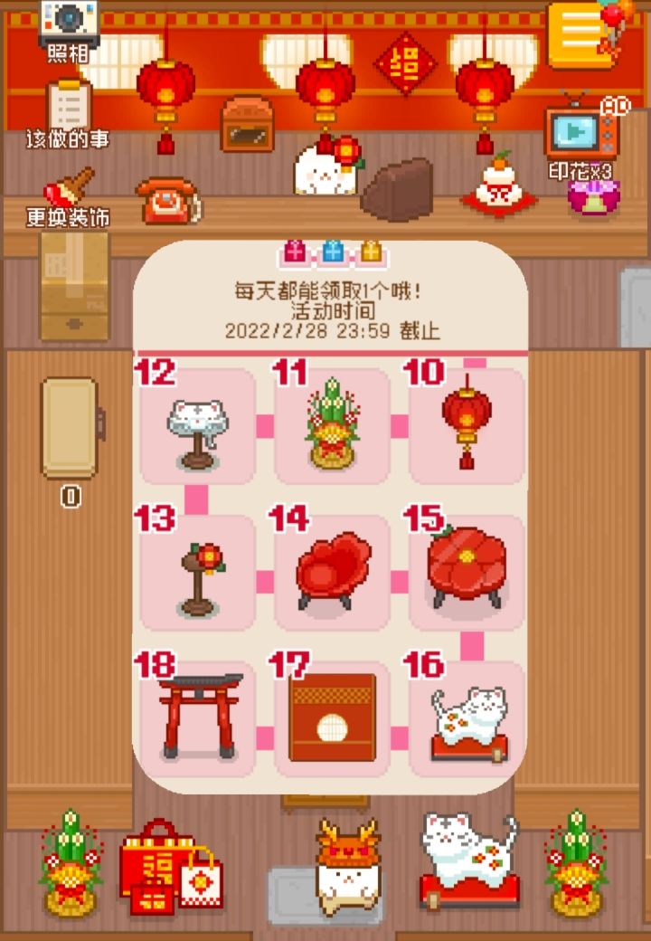 各位面包房老板好~这次妖精面包房又要更新啦,这次的“新活动”是新年登录奖励,喜迎新春节!每天只需要登录,即可领取奖励~活动时间:更新后~2022年2月28日截止。除了新活动之外,此次版本还修复了一些各位老板反馈的一些游戏bug问题,如下。・在抽奖中心抽奖时卡死或闪退的问题;・抽奖中心的奖品一览的数量不匹配的问题;・部分家具变成白块的问题;・可购买的家具中不包含活动家具的问题;・其他的