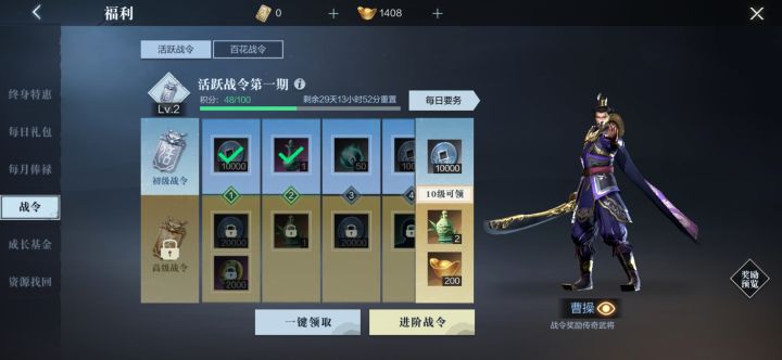 两个战令 一个武将一个战魂 无语=_=