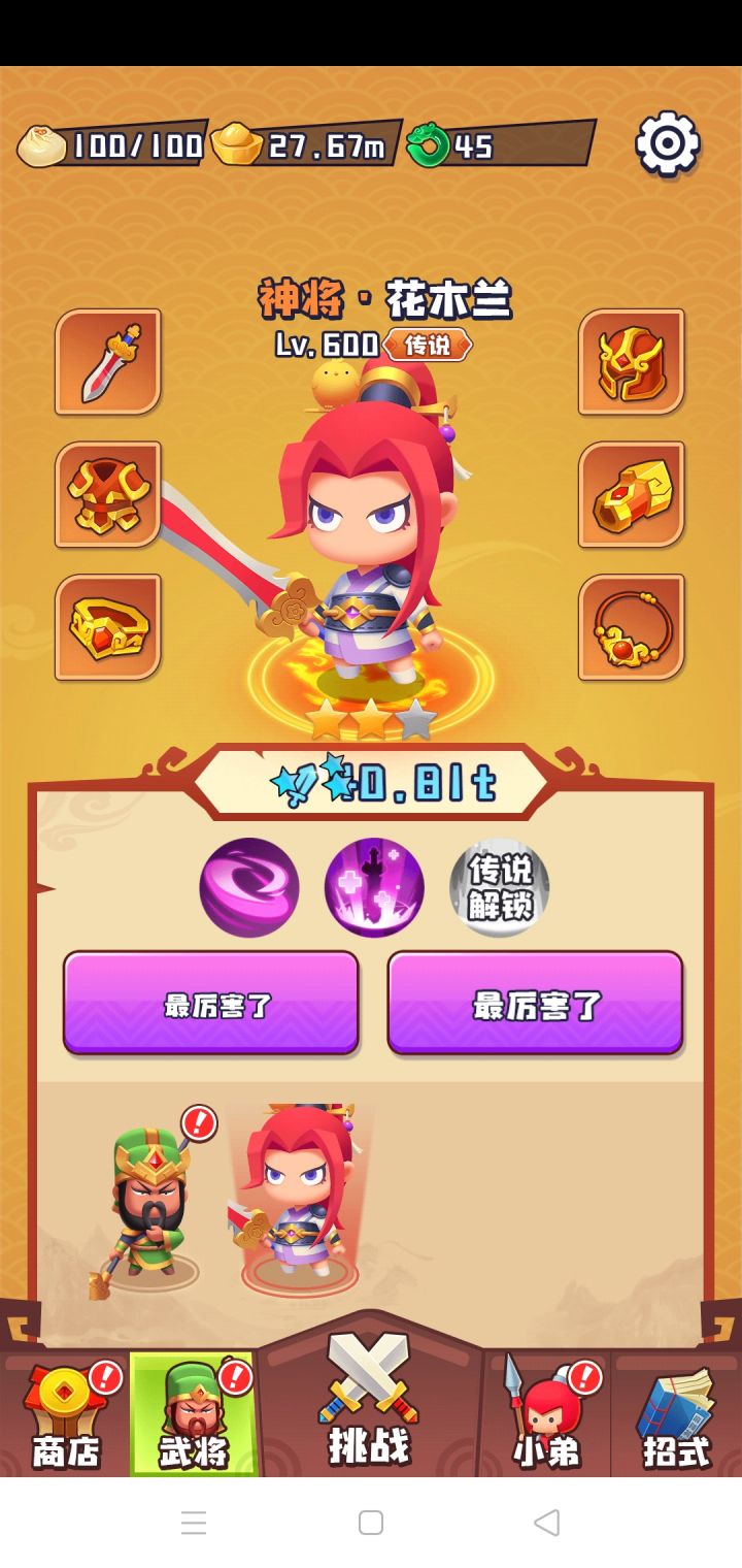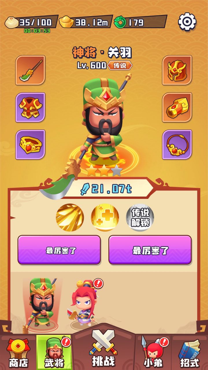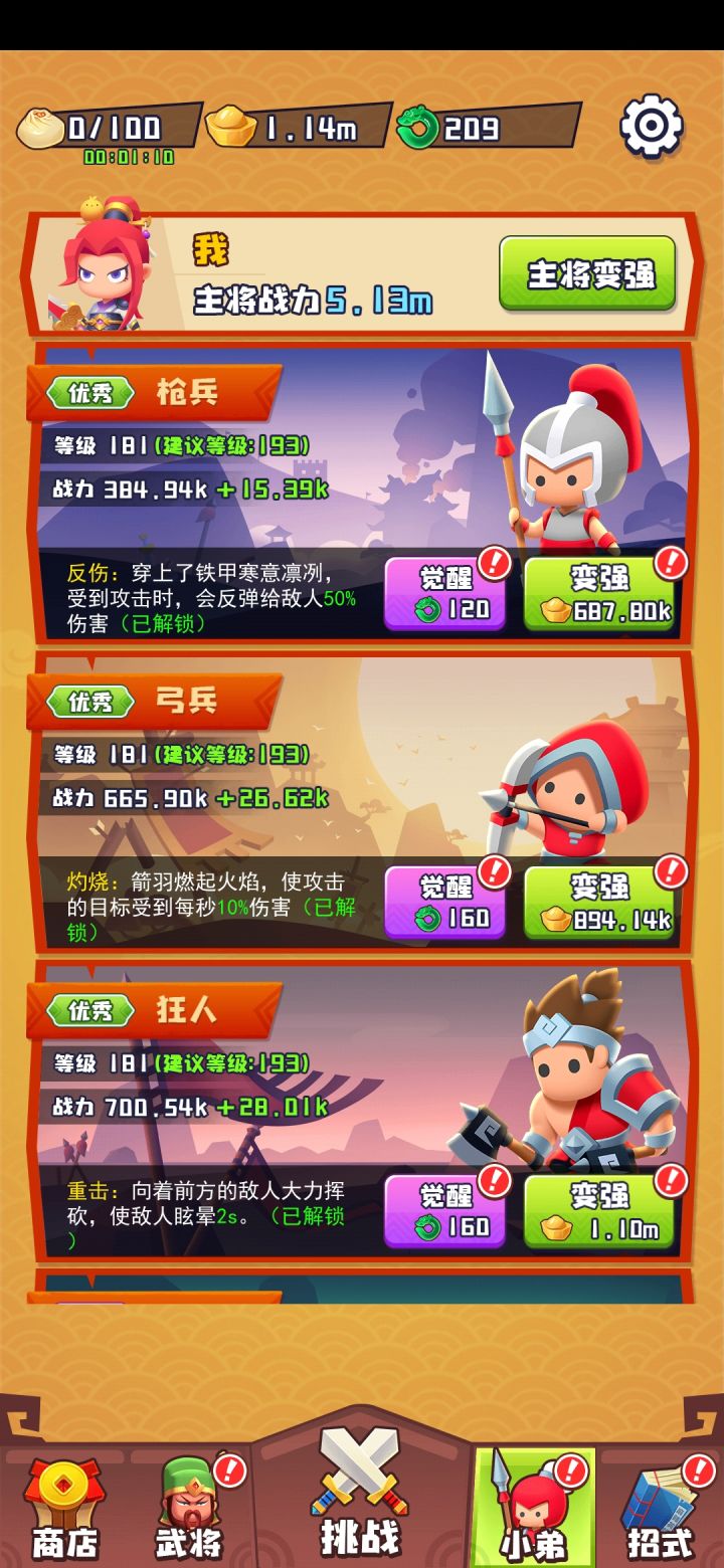主将太重要,小兵显得比较鸡肋,主将只开放了第二个,已经卡关了。望平衡。