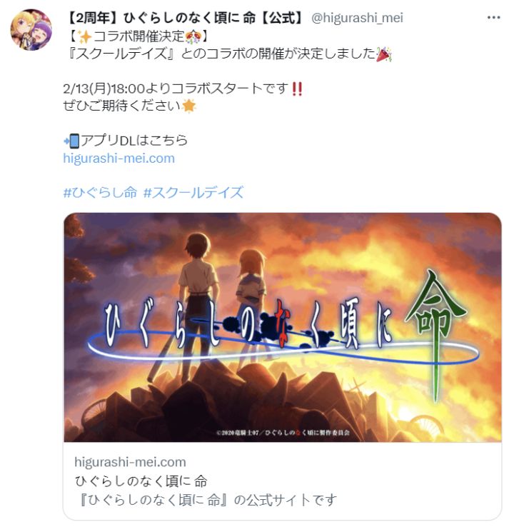 手游《寒蝉鸣泣之时 命》×《School Days》联动决定