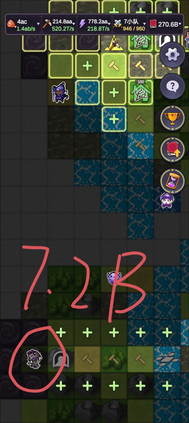 游戏是好游戏,可惜不赚钱,有很多点作者没来的及完善休闲游戏本来也没啥看攻略的必要,但是游戏的确因为设计缺陷让人多走了些弯路。也算是乐趣的一部分吧生产科技的话,食物->花园,材料->仙果,玛娜->凝结炉,往8倍区域一放就行。看我第一张图的每秒收入就有数了。最后的boss靠部队拿命去填,所以最好把部队加速的地方占了,活得快。最终阵容2队魔法侍卫3队圣枪3队火法,全靠烧人的伤害(作者是不是FFF团