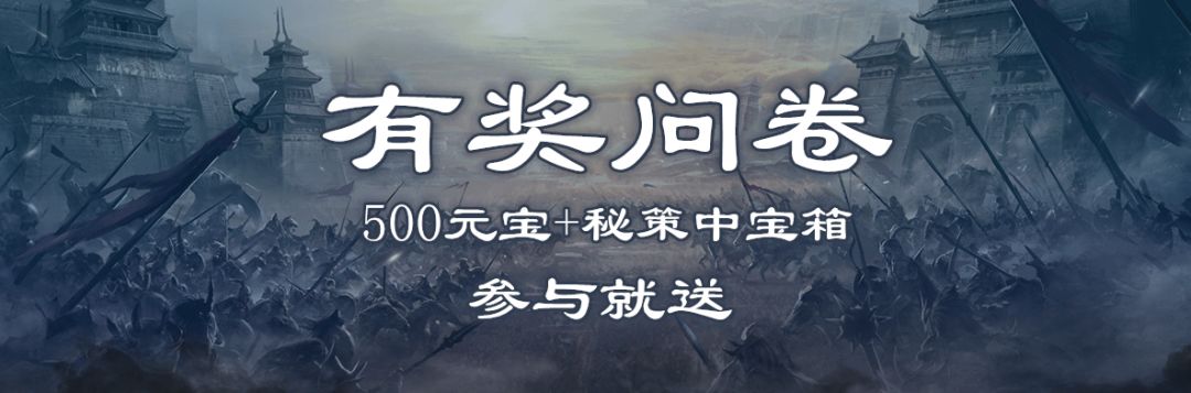 非常感谢您抽出5分钟完成本次《王者之师》的有奖问卷,我们为参与本次问卷的主公准备了一份【问卷礼包:500元宝+秘策总宝箱*1】略表感谢。(问卷截止时间:2020年12月6日24时)注:截止后2个工作日内,通过问卷填写的区服+角色名发放问卷礼包至游戏内。 问卷链接: 点击↑↑↑↑↑↑↑↑↑↑参与 ☆其他活动资讯: 活动: 资讯: 资料: