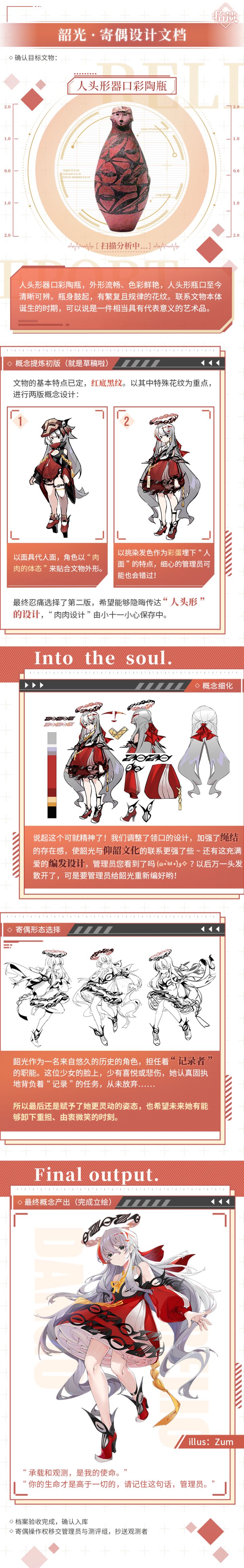 【拾遗·寄偶设计档案·韶光】亲爱的管理员,欢迎来到画师捕捉现场~小十一已经向大家介绍了我们的第一位寄偶:韶光。相信大家对这位少女的设计与巧思都有一些好奇,今天小十一就绑,不是,请到了画师Zum老师分享绘制韶光的过程与思考~“一般提到陶土,给人印象都是古朴沉重的。但这个人头形器口彩陶瓶,像是美丽的红衣少女,我很想能在笔下展现她的美好。”“Zum老师……想不到你还挺会说的,小十一我脸都红了⁄(