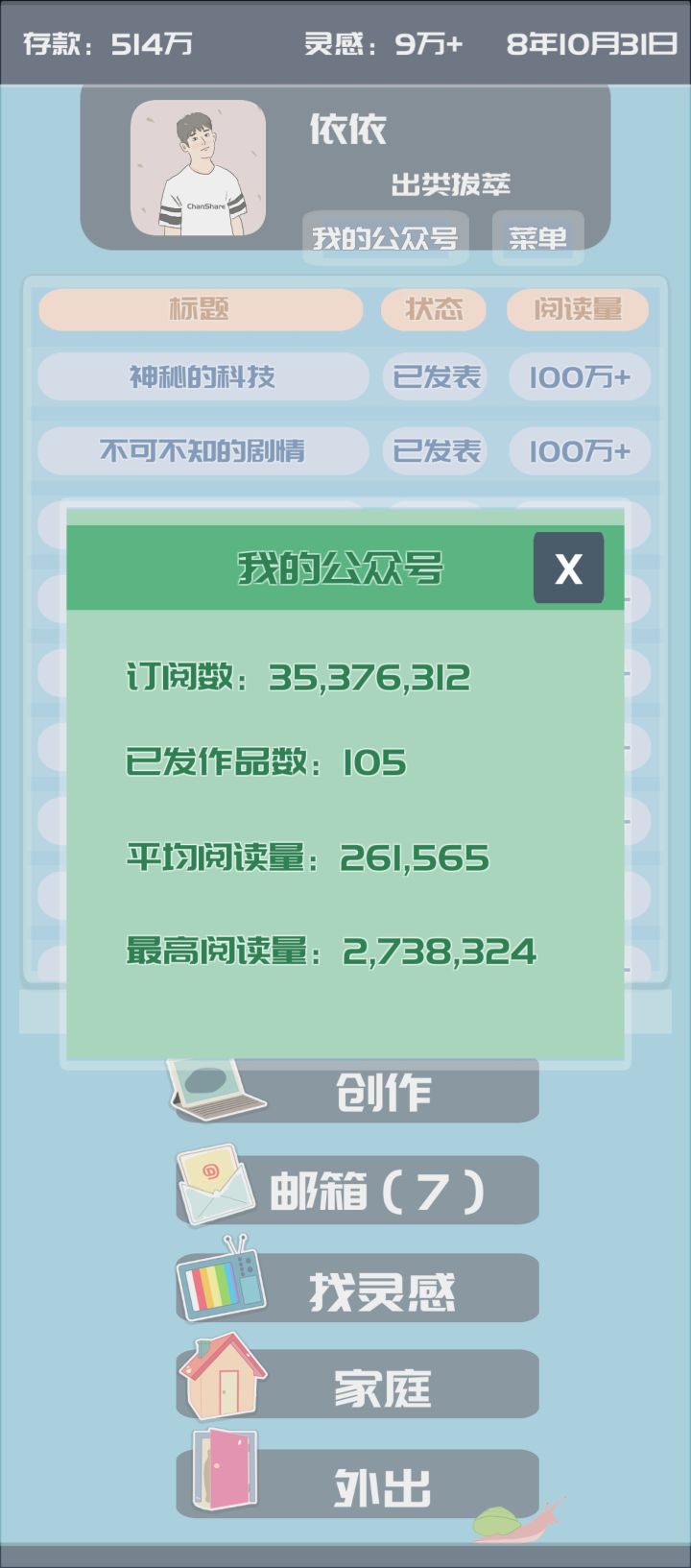 2.发育期后基本无敌,买房只是时间问题,没有让人玩下去的欲望,只是不断重复创作和收集灵感。
