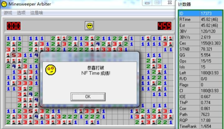 楼主,有一个重大问题,就是你左上角进行了一次主动插旗又取消,我看感觉不像误触,问题就是不插旗挑战在这一刻就失败了呀,这个游戏只要插过旗,完成时的模式就会标注为Flag,你可以用小地图试一下。。。要NF标准就不能插旗,就算是不小心插旗也不行