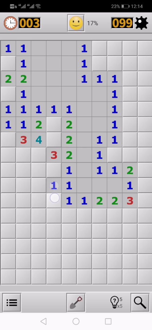 第一次运气没误触到雷,第二次误触空白区域,第三次运气耗尽。。。。虽然还有两条命,不过这么早废了一条,肯定过不去了。。。