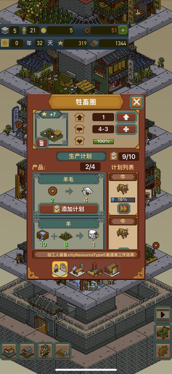 太累了,没有税务局,没有税务员帮我收费,点击不光累而且误触严重 ,农田数量太少了,要种植的种类还巨多,饭严重不够都饿死了,建到第九层实在受不了了,玩不动了