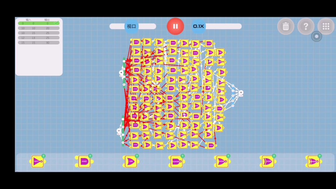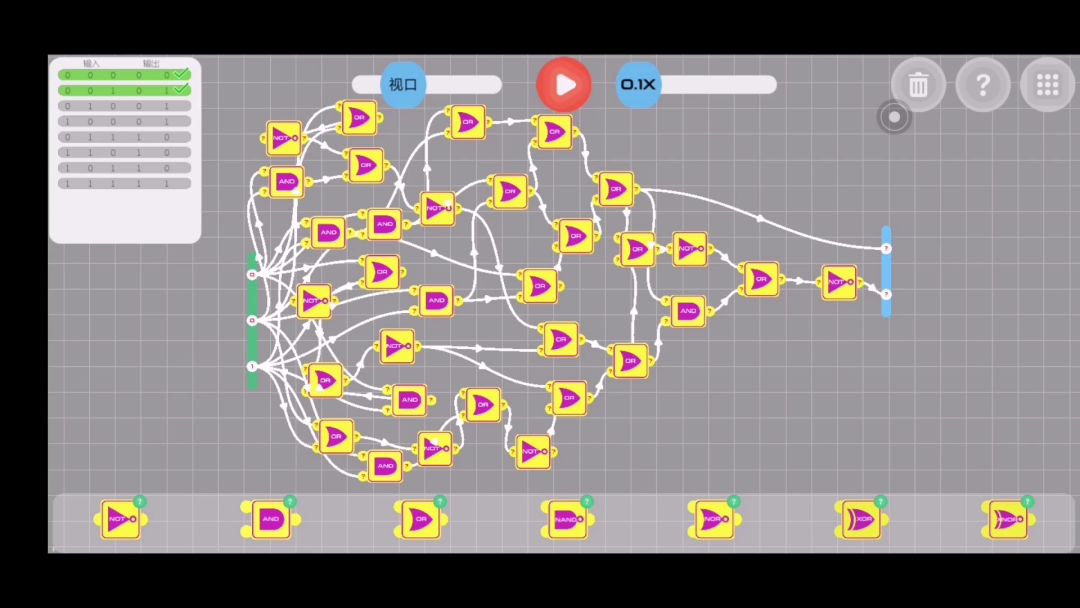 零基础玩这游戏一开始啥都不懂玩了两趟 然后试着用基础门做了半加器之后又做了全加器 然后做了四位加法器 (小骄傲)