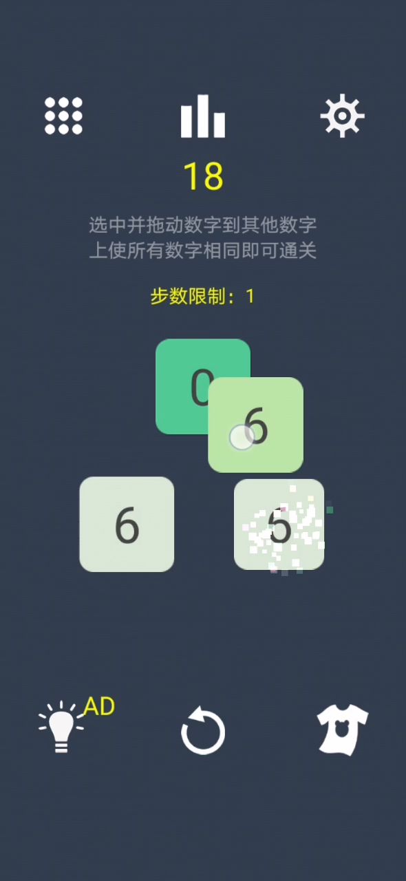之和为18,每个就需要6,需要组合12或者6,14上移,变为10和7,10左移,变为5和6,剩下5和7账户移动就可以通关