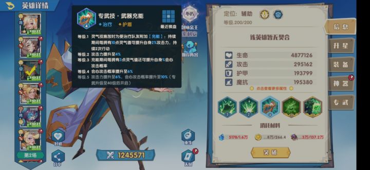 废话不多说直接上图再随便搭配下回灵力神器,以及人辅回灵速度,那那三个主力基本就是每回合都能放一两次技能,除非被控,但两辅助都是解控的。这阵容集齐了坦辅奶控输出,除了极限温蒂我想不到更好的贫民阵容了#攻略#游戏讨论