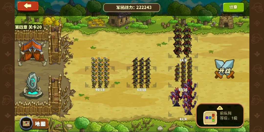恭喜你来到第一个坎。让我们来看看我们的对手两组美杜莎,一组魅魔,一组哥布林骑兵,一个美杜莎BOSS。这关的难点就是哥布林和BOSS。对阵骑兵,我们有三个办法:1,同样的骑兵,双骑对抗加🤺。2,放上一队炮灰或坦度较高的兵种,硬抗伤害,黏住骑兵。3,用蛛魔跟骑兵对,让敌人的冲锋刹在半路上(没蛛魔可以忽略)所以我们最上面的兵种就按上面来选择,此时已经成功一半了BOSS:美杜莎。它的弱点就是用一波