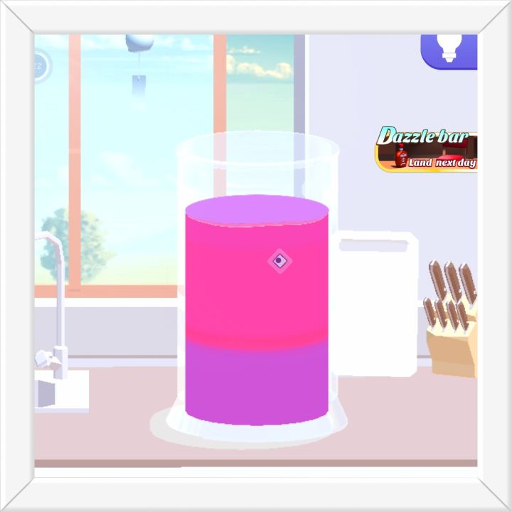 看似简单,实则越往后越需要开动脑筋的调色益智小游戏~ 虽然很基础但还是先贴在这里: 红色+黄色=橙色(更改比例会变成浅橙、橘红) 红色+蓝色=紫色(更改比例:粉色、蓝紫) 蓝色+黄色=绿色(更改比例:草绿、青色) 老墨就感觉青色和蓝紫超好看的!速速把这些衍生配色也加入通关条件吖 唯一认出的一种酒:血腥玛丽 游戏过程中每调出一种酒,就会展示对应名称,在游戏的同时还可以涨涨知识~你知道几种鸡尾酒呢? 一