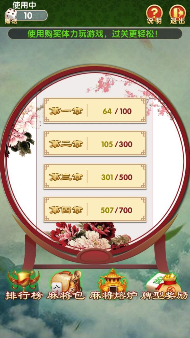 连连看经典玩法加入精美麻将牌面,数百关卡,变化无穷。更有不同牌型奖励以及麻将合成功能。锻炼大脑和眼力,让你的手指停不下来。