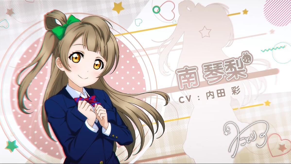 《Love Live! 学园偶像季:群星闪耀》角色PV——南 琴梨 南 琴梨(CV 内田 彩) 生日:9月12日(处女座) 身高:159cm 血型:O型