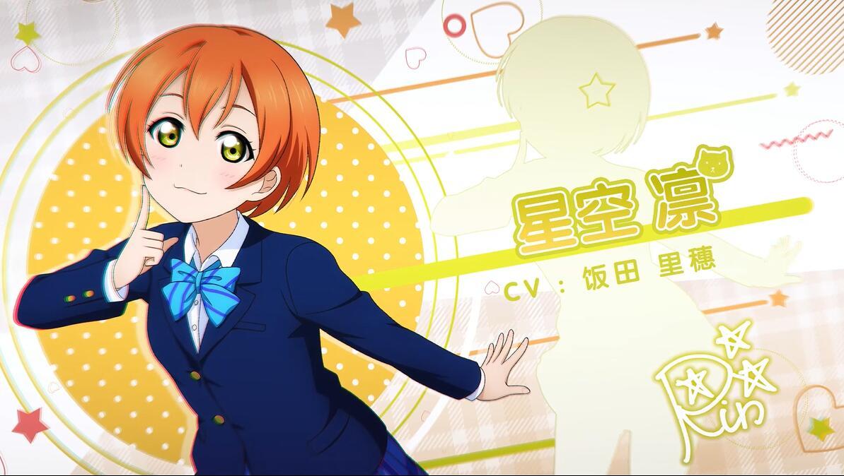 《Love Live! 学园偶像季:群星闪耀》角色PV——星空 凛 星空 凛(CV 饭田 里穗) 生日:11月1日(天蝎座) 身高:155cm 血型:A型
