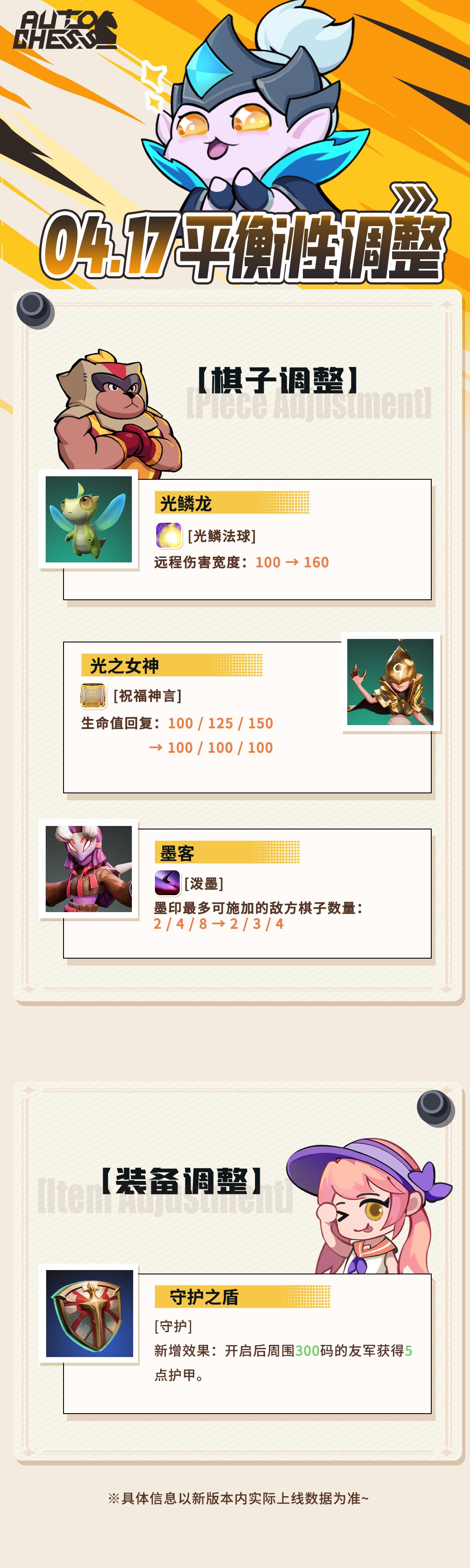 亲爱的各位棋友: 《多多自走棋》正式服将于7月28日 05:00(UTC+8)关闭匹配, 06:00(UTC+8)开始进行停服更新维护,预计维护时间4个小时,维护期间暂时无法登录游戏,开服时间会因实际维护情况提前或推迟,请提前安排好您的游戏时间。本次更新内容如下: 【棋子技能重置】 1.光鳞龙 定位:辅助 种族:龙族+光羽族 职业:法师 价格:3金币 技能名:风之索 技能效果 锁定敌方攻击力最高的