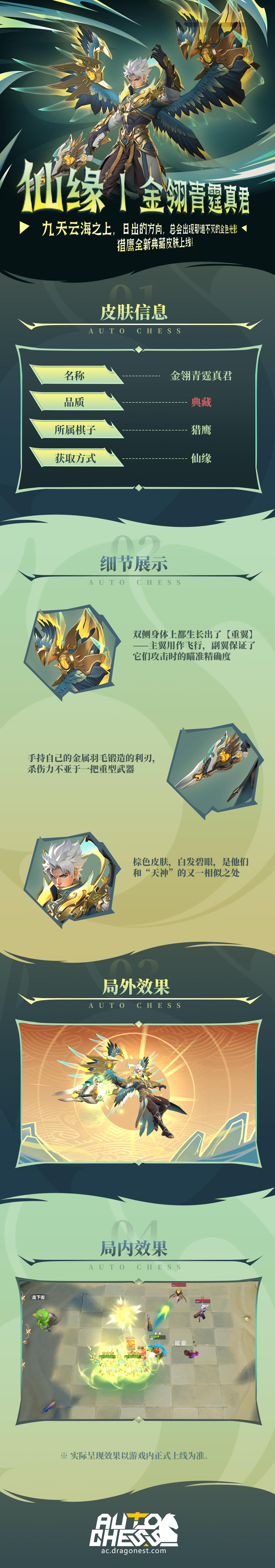 亲爱的各位棋友:《多多自走棋》正式服将于1月29日 05:00(UTC+8)关闭匹配,06:00(UTC+8)开始进行停服更新维护,预计维护时间5个小时,维护期间暂时无法登录游戏,开服时间会因实际维护情况提前或推迟,请提前安排好您的游戏时间。本次更新内容如下:【新增棋子】猎鹰-隼品质:普通种族/职业:守望者/法师生命值:550 / 1100 / 2200攻击力:40-60 / 80-