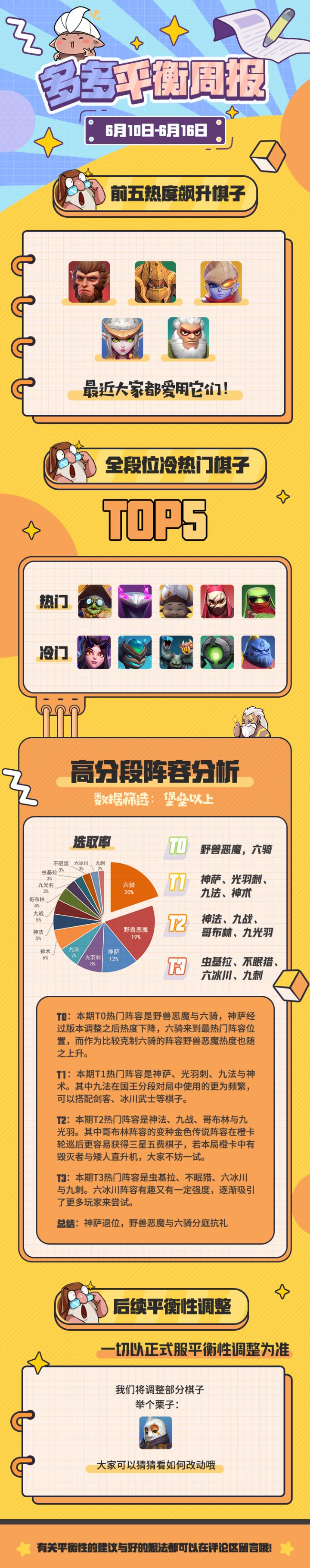 【平衡周报6.10~6.16】野兽恶魔与六骑平分秋色!平衡调整后百花齐放~棋友们可以猜一猜文末提到的逐风游侠改动会是?(๑•̀ㅂ•́)و✧