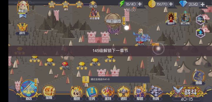 安利一个bug,如果你因为等级卡关了,可以在地图直接点进下一关的图标,这样等级限制就会取消