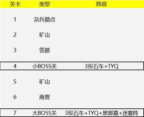 总篇:先看看炼狱5的关卡线路图啥是TYQ?各路英雄都知道,前排遇到一个T(曹仁、夏侯惇等)不用怕,怕的是这个T旁边还有一个营寨(Y),每回合自动灌满T的血量。而更可怕的是后排还藏着一个器械(Q),每回合叮叮咣咣地修营寨。以上便是TYQ。回归正题第4关第7关对面的近战性武将只有曹仁和夏侯惇,虽然伤害不高,但TYQ的阵型其有了一定硬度,依靠这种硬度,可以慢慢消耗你的前排,尤其是第7关的