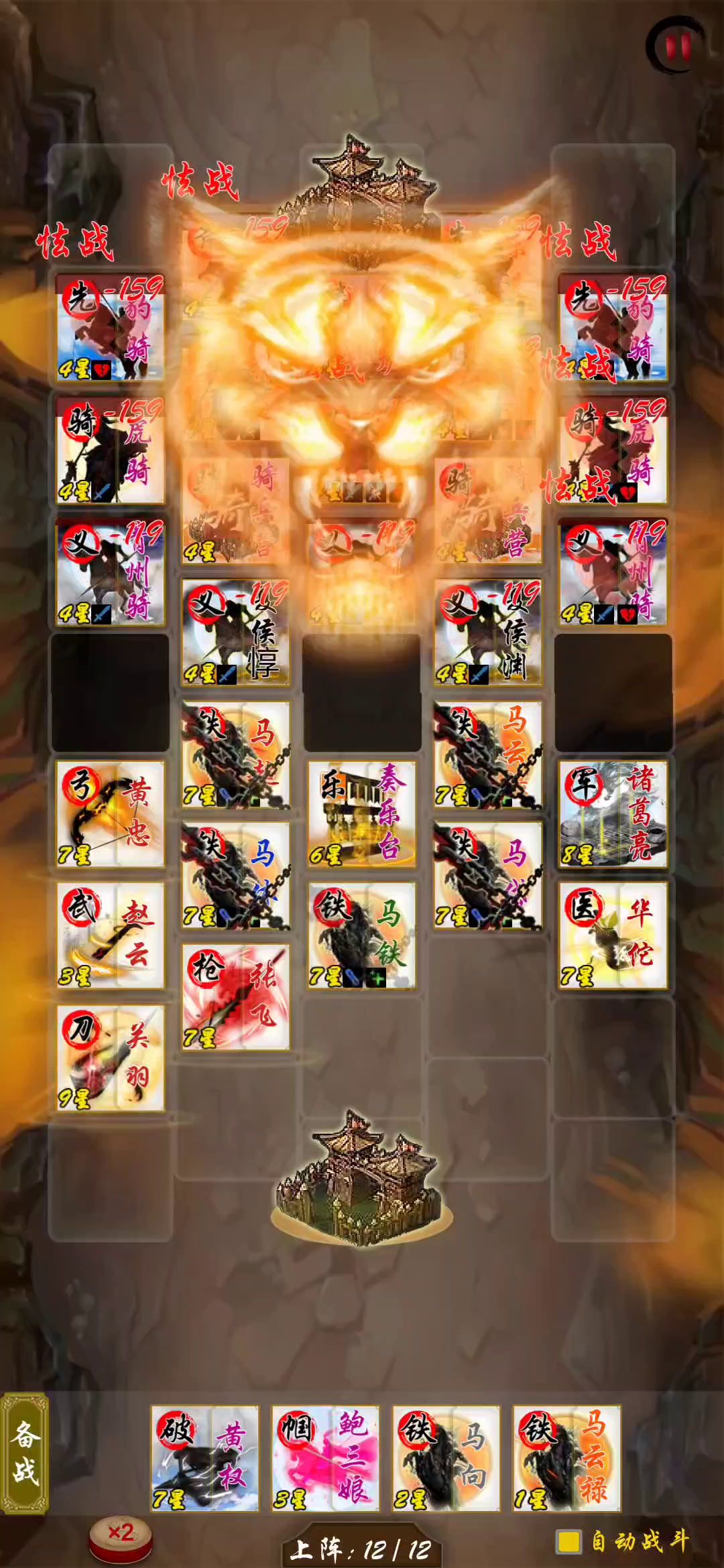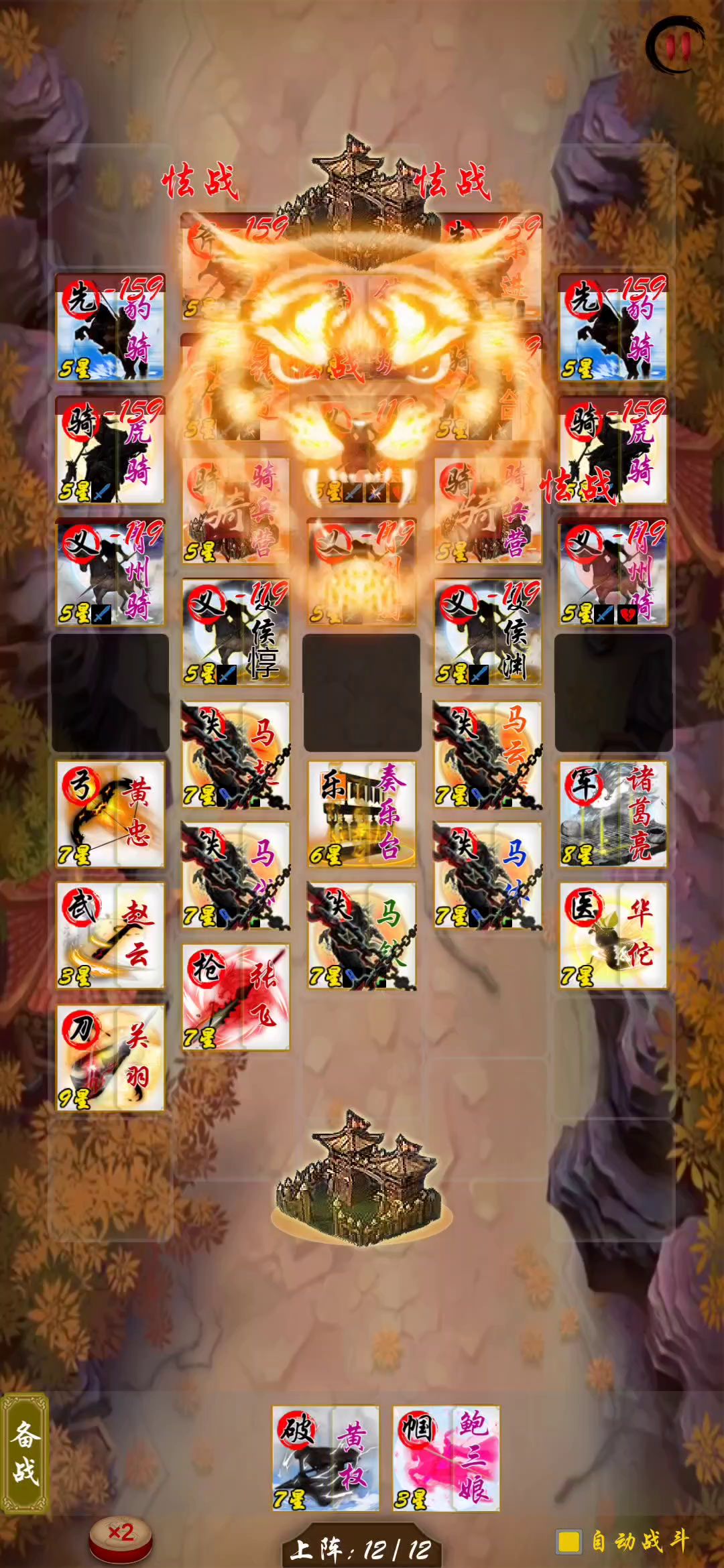 本来通过了一次,想复刻一局视频给你们看的,但是这个于禁一直不死我是没想到的,我第一局的时候被徐晃直接砍炸上的曹洪撑的,打这一关我发现了好玩的事儿,甲义这些血量越少防御越高的叠加的盾也是吃伤害减免的,这就很变态辣,不过这个不能算攻略,门槛太高了,估计没人能凑齐三毒五谋二佐,大家看看当娱乐就好😁😁😁 ps:开局一定要刷出23金币(最少要20金)才能继续玩,没有就退出重开。炼狱不是10人口没得打