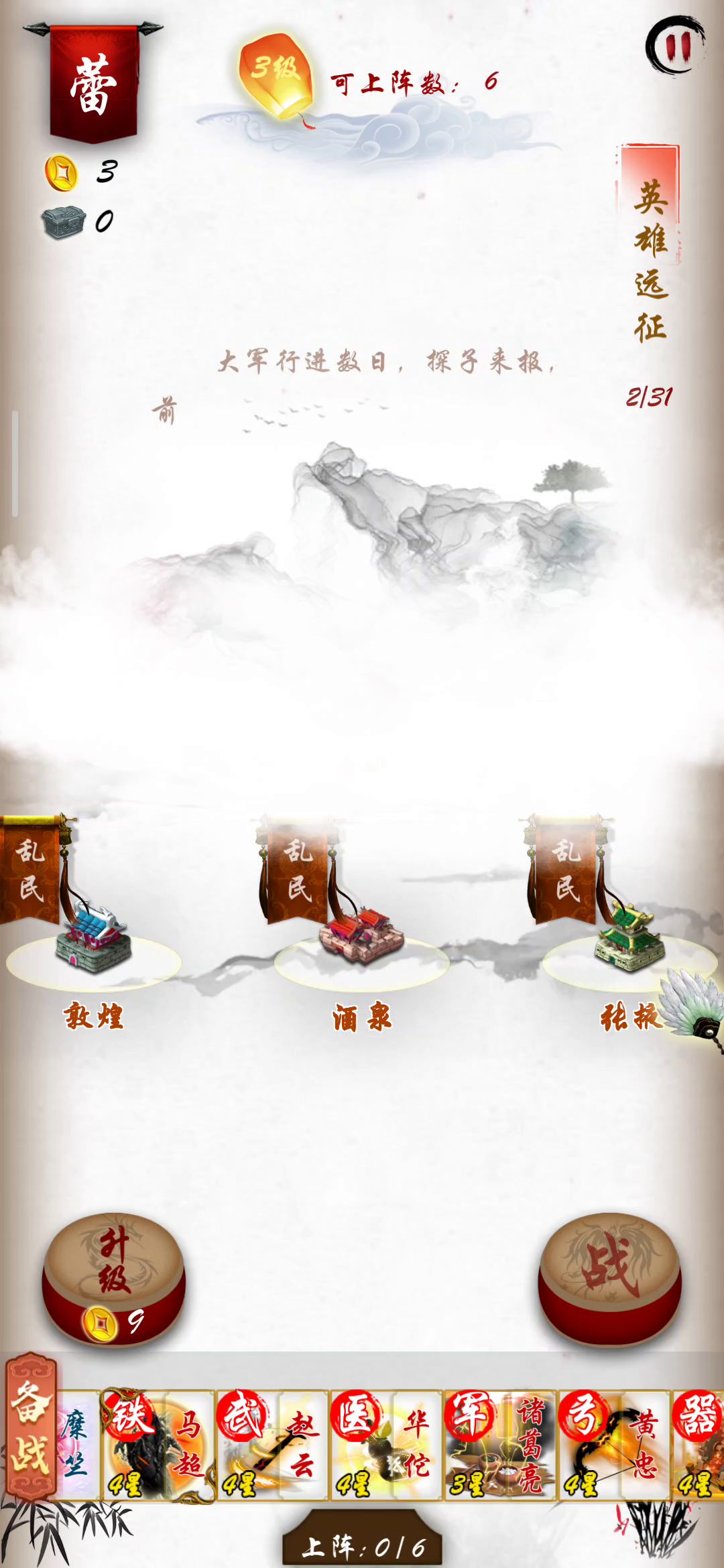 由于新版远征击杀豪杰黑将不给额外金币了,想开满19人口也还是有点难度的,所以现在我们不需要全右了,打第一个也就是第6关的豪杰关和最后一个也就是27关的豪杰关就行了,其他一律全左,基本上脸不是特别黑的话开满19人口也是毫无问题的。 不过新版这倍速问题我是真想吐槽下,真心感觉这2倍速还不如2.36版本的时候的哪怕是0.5倍。 另外我要说一句,远征关的黑术和黑投伤害真心要削一下,特别是黑投,4星黑投,专业偷家,一个二连发,基地直接残。黑术我就不说了,速度第一,开局一颗雷,对面全体残。看视频,30关黑张角,还好这次运气好,没有被群秒。 最后一点,曾经的那个绘卷亲儿子,秒伤五六千,无限闪避,能抗能打,有着单挑之王称号的神武赵子龙已经不复存在了,新版本的赵云。老油条都懂的,完全成了凑羁绊的。